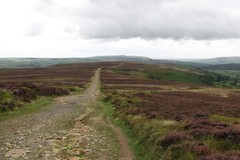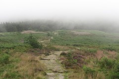 It was still hot and sunny when I reached the top of Kirby Bank, with good views of Roseberry Topping, and more industrial type scenery further in the distance. As I pushed on though the weather changed quite dramatically, cooling down a lot, and a strange cloud blowing in and reducing visibility. By the Wain Stones the cloud had really settled in, and it gave an interesting effect as the stones gradually revealed themselves out of the mist. At Clay Bank Top I bumped into two people sitting on a bench who were in the middle of doing the 40 mile Lyke Wake Walk. It is customary to do it as a single long walk, in less than 24 hours, and they had set off at 4am, and only had another few hours to go to get to the finish at Osmotherly. They looked quite fresh, and still sounded surprisingly cheerful, given how long they had been on the go. Then a couple of minutes later I bumped into the chap that I had met at Danby Wiske. He seemed to know a huge amount of detail about the whole coast to coast route, and eventually revealed that over the years he had already done the trail a total of sixteen times! He was bed and breakfasting nearby, and went off to find a signal to ring the B&B to come and collect him.