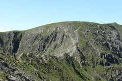 There were more cracking views on the descent from Helm crag. I took Poets walk through the short section of forest, where I caught a glance of a red squirrel, although it was a bit too quick to get a photo, then past the front door and croquet pitch of the Lancrigg Hotel. It was a pleasant walk up to Grisedale tarn, nice green fern covered hillside, grassy path, and views that just got better and better as the path climbed higher. As I crossed Grisedale Beck on stepping stones, thick shoals of tiny fish scattered in all directions. I took the steep path away from Grisedale Tarn, which soon eased off, to give easy walking to Helvellyn summit. It was lovely sunny day, although there was quite a chilly breeze, which was ideal for walking. There were quite a few people about on the summit, including a rather enterprising chap who had a stove on the go in a tent, and was selling cups of tea or coffee.