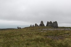 I got a reasonably early start, and did the short walk from the campsite back to the centre of Kirkby Stephen, getting there about 8am. There were a couple of coffee shops open and a small Co-op supermarket. I topped up the food supplies, including a couple more dark chocolate bars as evening treats, and then sat on a bench in Market Square and had a crusty bread and banana sandwich for breakfast. I got moving about 8:30am, there was quite a long road section climbing out of the town, past a huge quarry, but eventually it turned into a track, which quite quickly reached the Nine Standards. There were a few people at the standards, and I took a photo for two blokes who were standing in front of the biggest one, then treated myself to a bag of root vegetable crisps from the Co-op.