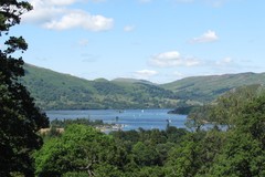 The route soon turned inland, and there was some road work, with enticing views of distant peaks, followed by a nice bit crossing a very green valley past Stanley Pond. By Moor Row the sun had come out again, and I stopped for a quick cup of tea at the "pop in" cafe. After Moor Row the route really picked up, with superb views from Dent Hill, then a steep drop into the pleasant valley of Nanney Catch. Just before Ennerdale Bridge there was a short section through a wild flower meadow with some superb orchids. The traverse of Ennerdale water was a lovely stretch, quite a rocky path so slow going, but with great views of the surrounding peaks in the evening sun, and further on through little wooded bits with lots of small streams. I passed a chap with a large rucksac who was planning to camp further up the valley.