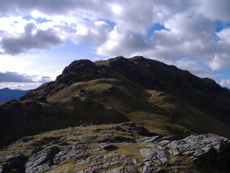 Day 2: Heading along the long shoulder of Ben Vorlich in the evening sun