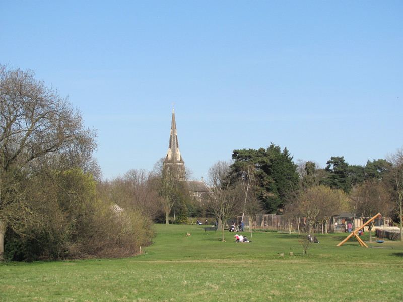Nice river section passing church on small hill at Hanwell