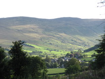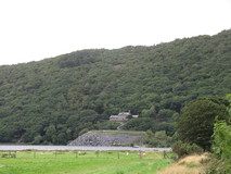 The town has a rather impressive backdrop, looking down most streets there are either huge towering cliffs, or massive slate tips that dwarf the houses below. After passing some large sculptures made of slate the route left town, and we got a bit confused with the instructions, but eventually found ourselves descending a path through a pleasant oak forest. Easy track walking took us along the valley towards Llan Ffestiniog, although part way along we did have a bit more navigational confusion, and it took us a while to work out the proper route. Nearing Llan Ffestiniog there was a lovely stretch through the Afon Teigl gorge, as the path picked its way along the sides of the gorge, a bit airy in places, and often knee deep in bilberies or heather. We finally made it to Llan Ffestiniog just after seven, where we had booked in to the pub in the centre of the village. The pub originally closed down in 2009, but got taken over by the community, and they have been gradually refurbishing and improving it, a rather impressive effort. It looked a bit weather beaten on the outside, but was good inside, very welcoming, and we got booked in and had veggy curry for tea.