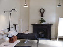 After some minor roads and small tracks, views of Llyn Padarn started to appear, and then Llanberis itself. We entered Padarn country park, which was superb walking, descending through gnarly oak trees and heather-covered hillside. Part way down the route passed by the entrance to the old hospital for the slate quarry, which was built in 1860, and dealt with the various accidents and ailments that used to befall the quarry workers, and is now a museum. We went in for a quick look round, very interesting, well worth a visit. Some of the medical equipment looks a bit gruesome by today's standards, but apparently the hospital was quite state of the art at the time. We pushed on down the hill, past an old 'slate incline', where the slate blocks were lowered down steep rails on trolleys.