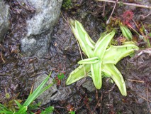 After leaving the river we passed through the small hamlet of Nantmor, and followed a quiet road to Bwlychgwernog, from where the old drove road headed across to Croesor. Just as we started along the drove road it started to rain, almost exactly as predicted by the forecast. It was along here that I had first spotted the Slate Trail signposts back in 2018, while I was doing the Snowdonia Way. The drove road goes through some superb scenery, lots of fern covered hillside, little crags all over the place, little streams, and we even found some carnivorous bog plants! At Croesor there was a small cafe and art gallery, and a break from the rain and cup of tea would have been very welcome. but unfortunately it didn't open until midday, so we pushed on.