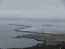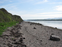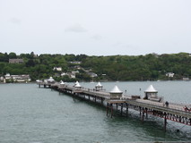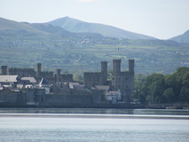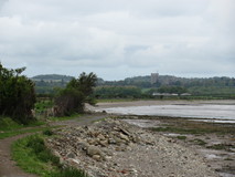 It was a comfortable night in the tent, maybe a bit too comfortable, as I didn't get going until half past eight the next morning. Down at the promenade there were views across the mudflats to Puffin island at the tip of Anglesey, and all the way back along the coast to the Great Orme. On leaving the promenade, the path went round various bird marshes, and it was nice to be walking on proper waterside footpath rather than pavement. The route even went along the pebble beach for a short stretch. It finally met a car park, where there were signs to fishermen in English, Welsh, and Polish. The route now went inland, to get round Penrhyn Castle. As it got closer to Bangor, the signposts seemed to get a bit hit and miss, and I had to use the map quite a bit. At one stage, the signs disappeared for quite a while, and I popped out in the middle of an industrial estate. But some puzzling over the map got me onto a cycle route which was going in the same direction, and at the far end of it the coast path signs eventually re-appeared.