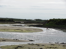 After the bridge the route headed out along the other side of the estuary, through a mix of fields, with some nice gorse, and lots of waterside stretches. I eventually arrived at the landing lights for RAF Valley Airfield, and shortly after the long beach of Traeth Cymyran. I could see Rhosneigr in the distance, with the Welsh mountains sillhouetted behind. It was quite a long beach, and the town didn't seem to be getting any closer as I walked along. Eventually though I came to the river crossing of Afon Crigyll, where there was a usefully placed row of wobbly rocks to get across. As it was Saturday night, the campsite was quite busy, and the owner pointed me to a quieter spot to pitch up away from some large and noisy groups. There was a large blister on my left heel that I had been putting Compeed on for a couple of days, but it was still sore, and after the shower I pricked it to release the fluid. The tent spot wasn't too bad, and apart from a minor rumpus outside at about two in the morning, I slept very well.