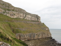 I was woken up by some stirring in the dormitory at about half past seven, and was up and on the go for eight. The weather was a bit dull compared to the previous day, and there was a strong chilly wind blowing along the promenade. The next bit of the route did a circuit of the Great Orme, following the Marine Drive, to end up at the South side of Llandudno, a couple of hundred metres from where I had started! Although it was all on pavement, it was a pleasant circuit, with superb views of cliffs above and below the road. There was no traffic, apart from occasional cyclists breezing past on the road. It was reasonably sheltered until the 'Rest and Be Thankful' cafe, where the road turned a corner, and a strong cold wind and drizzle suddenly hit me head on. I hid from the wind behind the cafe and put full waterproofs on. After battling through the wind, to get back down to the seafront on the South side of Llandudno, I sat in a sheltered seat on the front and finished off the remaining rosemary bread and houmous for breakfast.