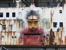 By Greenfield I was feeling a bit weary, and I had a lie down on a bench for a while in the sun, before pushing on along a pleasant grassy path beside huge boulders making up the sea defences, heading for a large rusting ship in the distance. At the ship I made a short inland detour, and found a small cafe in a craft centre, where I had a bowl of soup and a pot of tea, and filled up my water bottles. Back at the ship, the other side of it had a series of colourful paintings. More grassy walking beside flood defences led to Mostyn Quay, where the route moved to the pavement beside the road for a while. As I passed through Fynnongroyw, some punters sitting on outside tables tried to tempt me into the pub. The last stretch was a bit of a dogleg to get past some sort of large industrial plant, complete with a maze of pipes all over the place. I pitched up in a secluded spot near Talacre, and had two packets of noodles for tea. There was an excellent sunset over the wind turbines out at sea. With the clear skies, it very quickly got chilly once the sun went down though, and I needed most of my clothes on to keep warm in the rather minimal one season sleeping bag!