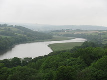 The weather seemed to have dried up a bit by the time I arrived at Ferryside at quarter past twelve, and I adjourned to the cafe for baked potato and baked beans, and a pot of tea. There were good views back across the River Towy to Llansteffan. From Ferryside the path took a number of fields, the signs were a bit sparse, so it required a bit of concentration on the map. After Llansaint, the route descended, first on a small road, and then farm track, with great views over to Pembrey Forest, and on to the Gower beyond. At Kidwelly I took a short stroll up the river to go and look at the impressive castle. There didn't seem to be much in the way of shops in town, but there was a small newsagent, and I got a couple of sports drinks, and some extra instant noodles.