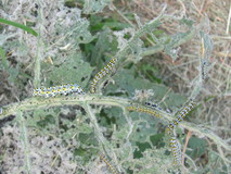 It was quite hot going, and I was going through plenty of water, and I topped up yet again at the WC at Manorbier Bay. It was quite busy with people at the bay, and yet five minutes away on the path it was deserted again. There was superb vertical strata after Manorbier, with occasional narrow vertical clefts where a single layer of the strata had been worn away. At Lydstep I went through a large holiday camp, before joining the beach for a while. There were nice views of the evening sun on Caldey Island. Round here I came across an intriguing plant, very tall, but which had been attacked by a load of rather well fed looking caterpillars, leaving it almost down to a skeleton. Near Penally I reached a small high point with a flagpole where I could look down inland over the campsite, it looked really busy with rows upon rows of caravans, but I walked down, arriving at half past six. The attendant wasn't around, but there was enough space to pitch up, alongside the two other tents on the site, and then I settled up when the attendant got back.