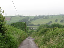 I got going at half past six, on a mix of easy lanes, and some fields. Nearer Carmarthen the route joined a riverside path along the River Towy, past some horses and later some cows that had free reign over the path and surrounding grass. I arrived in Carmarthen at twenty past eight. I was hoping for a decent cafe for a breakfast stop, but I couldn't find anything, so I got a few supplies from a small corner shop and pushed on. The path crossed over the River Towy on the pedestrian bridge to the railway station, which I recognised from when I arrived in Carmarthen by train eleven days ago. The route followed a pavement along a road through various out of town shopping parks. The weather had been fairly dull so far, but now it started drizzling, and I had to put full waterproofs on. I carried on following the route along roads, which got progressively smaller, until finally turning into a farm track.